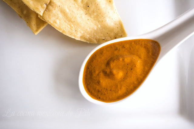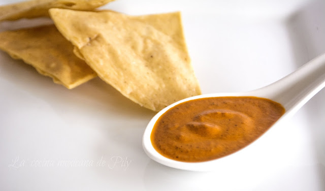 Este tipo de salsa no la había probado nunca, es cremosa, con un sabor profundo, sabe a cacahuate pero no tiene cacahuate, te deja un sabor a chiles asados, tostados… no sé ¡Buenísima! ¡La tienes que probar!
